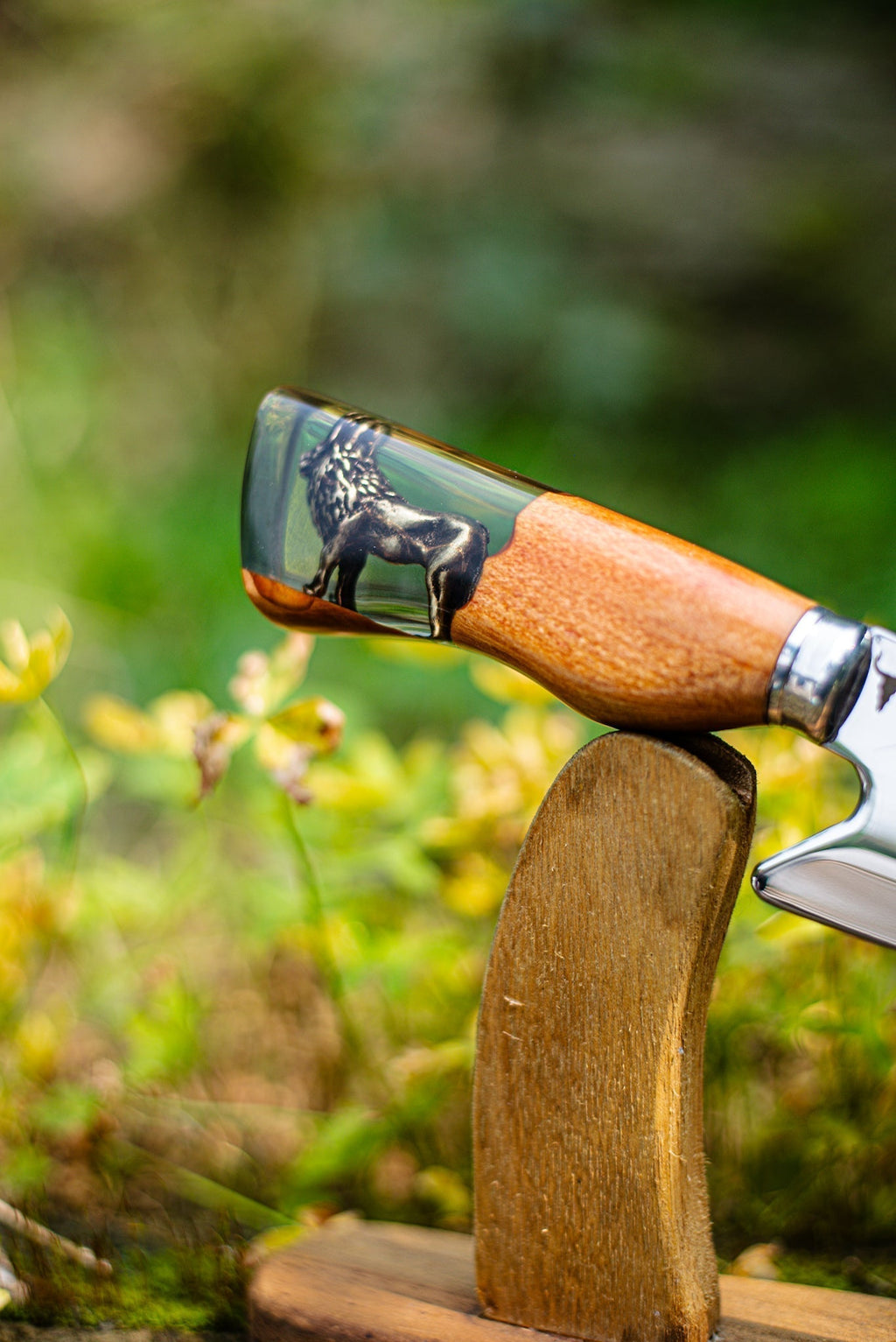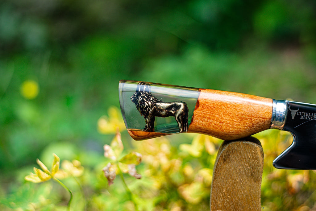 Lâmina: 10 polegadas, em aço alemão forjado 420C, desenvolvido especificamente para cutelaria de alta performance, oferecendo cortes precisos e durabilidade extrema.