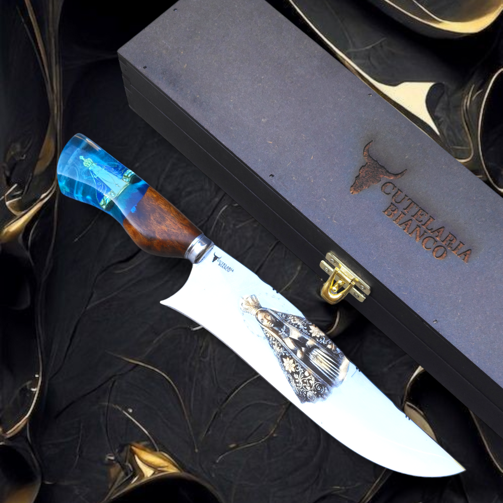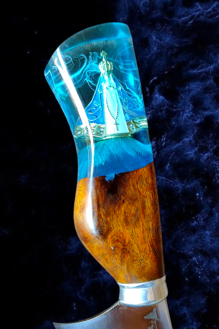 Inspirada na fé, na proteção e na força espiritual que guia milhões de brasileiros, a Faca Padroeira é uma peça rara, criada para ser herdada, reverenciada e eternizada.