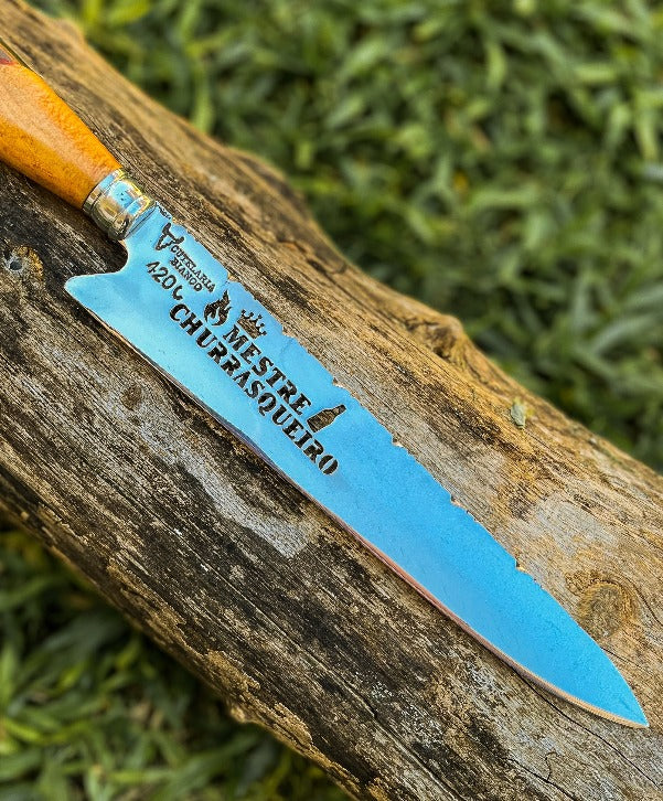 Projetada para churrasqueiros experientes e amadores a Faca Artesanal Mestre Churrasqueiro  e a solução ideal para o seu churrasco ou presentar alguém especial